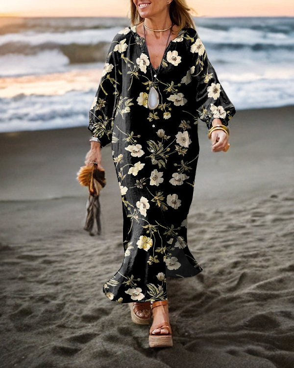 Vintage Floral Long Sleeve Cardigan Maxi Dress