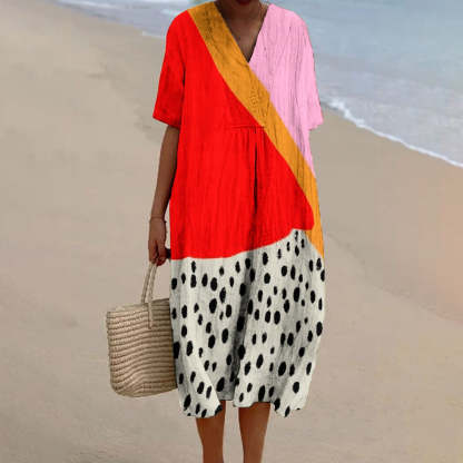 Women's Abstract Colorblock Print Flowy Linen Dress