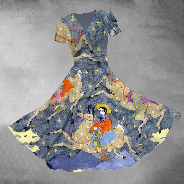 Women's Art Print V Neck Swing Dress