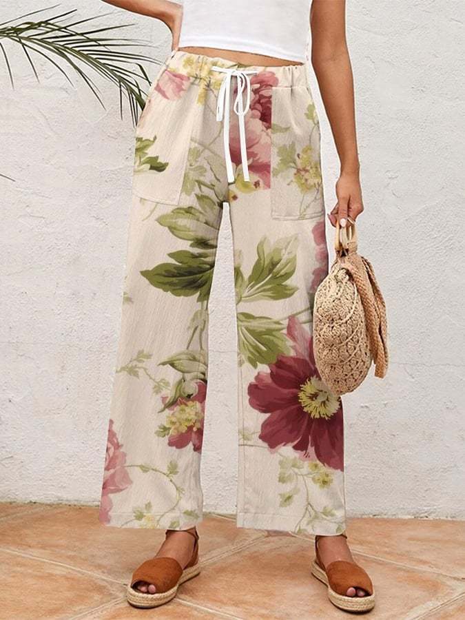 Women's Botanical Floral Design Printed Loose Casual Pants