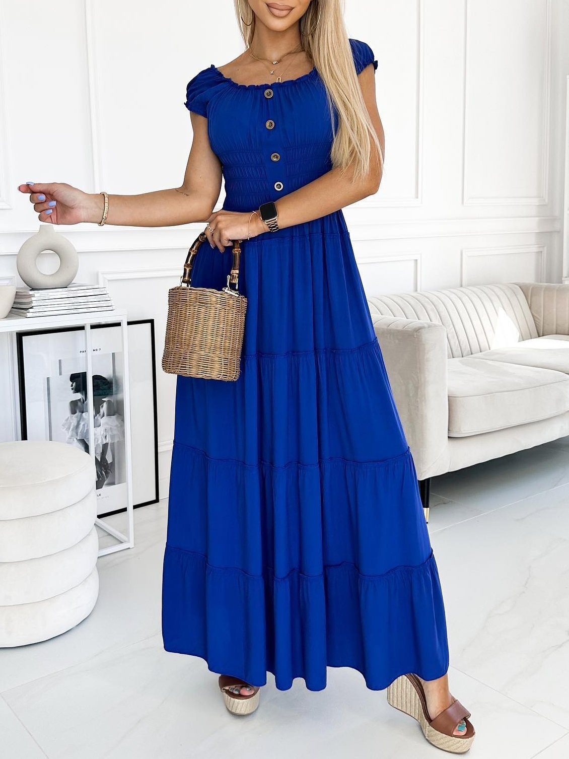 Women's Casual Button Front Swing Dress