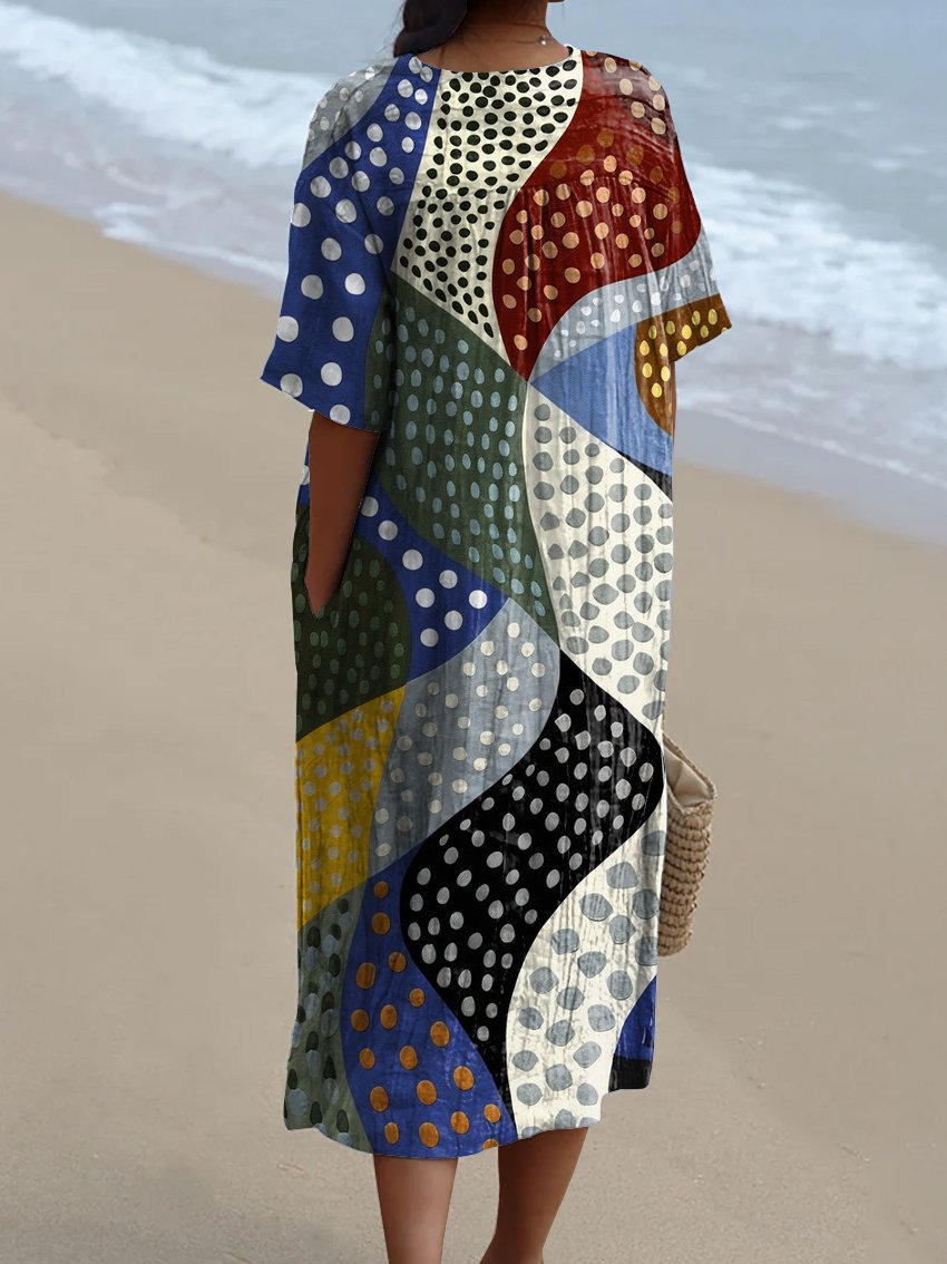 Women's Color-blocked Abstract Art Watercolor Splash Fluid Art Print Flowy Dress