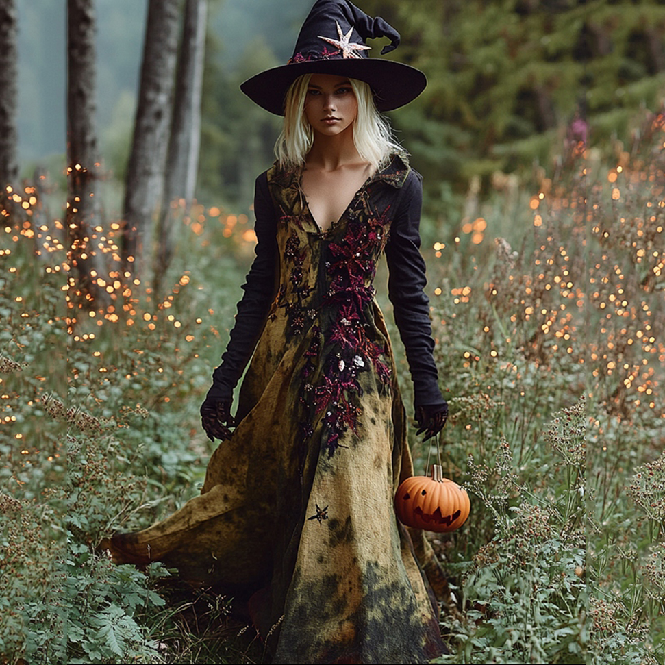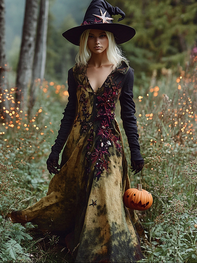 Women's Halloween Gradient Floral Witch Maxi Dress