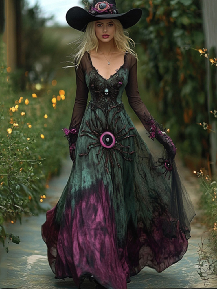 Women's Halloween Gradient Scary Spider Eyes Witch Maxi Dress