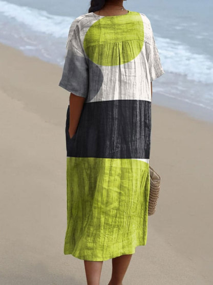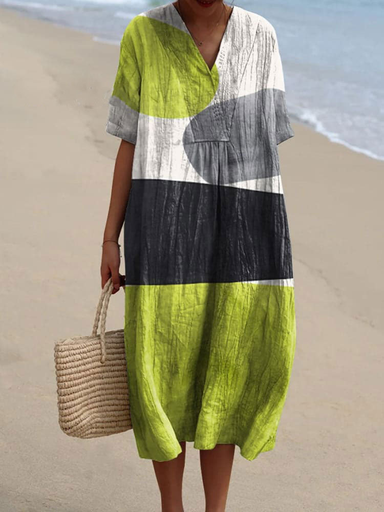 Women's Modern Abstract Minimalist Lime Green and Grey Art Art Print Flowy Dress