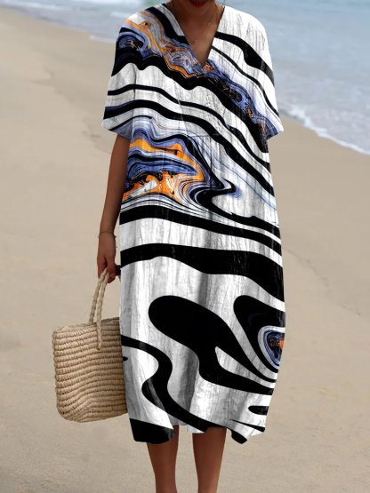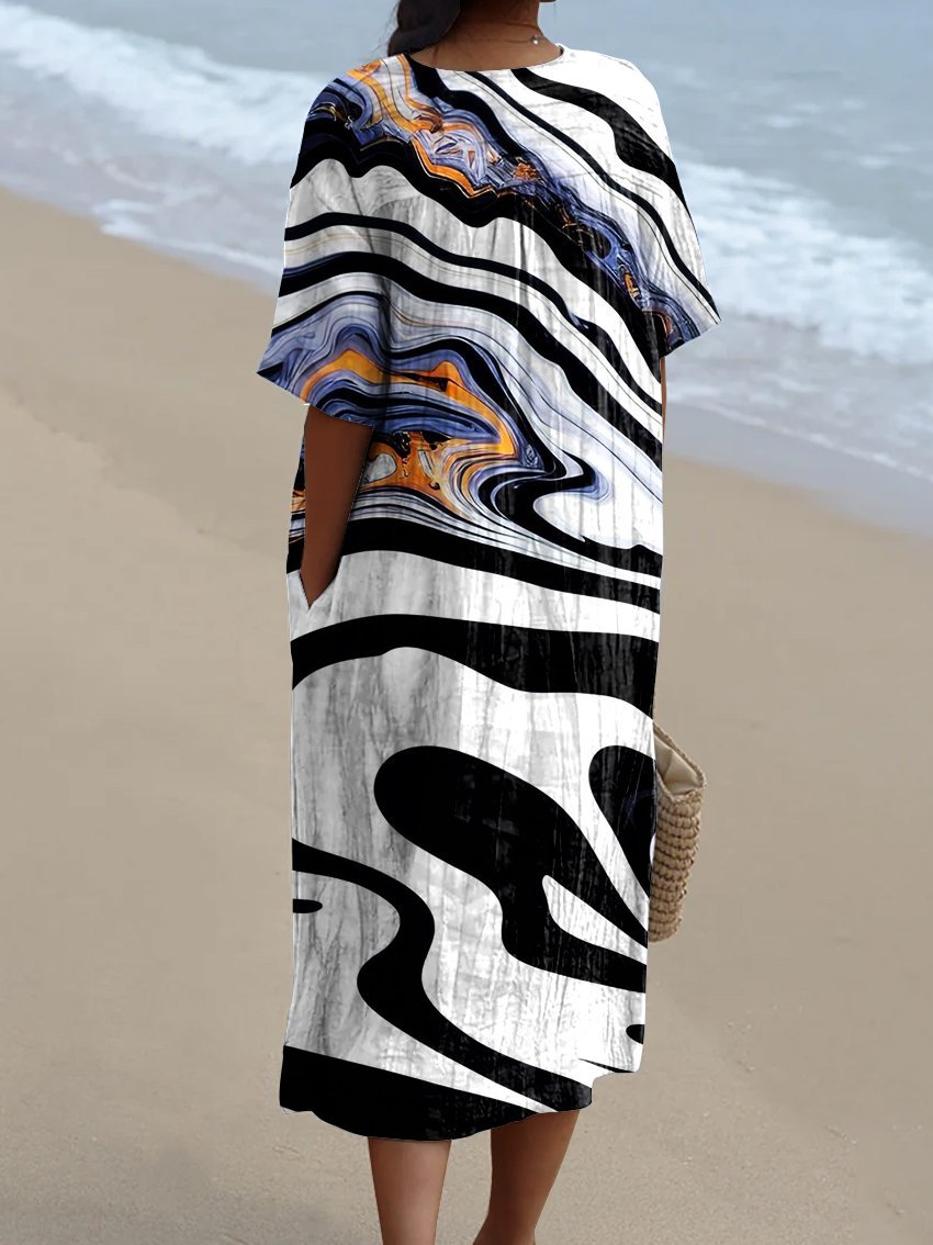Women's Simple Black and White Ripples Watercolor Splash Fluid Art Print Flowy Dress