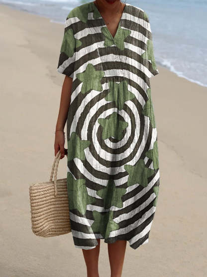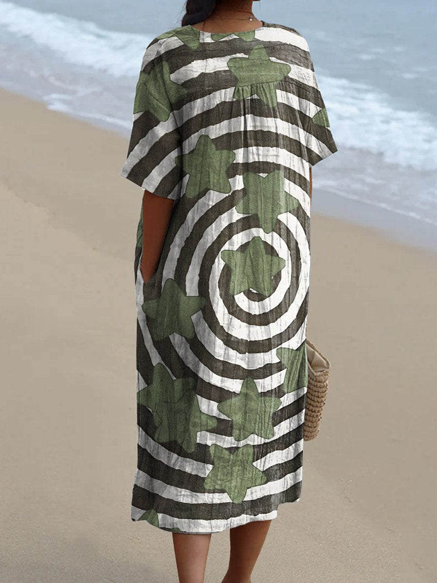 Women's Spiral Pattern Stars Art Watercolor Splash Fluid Art Print Flowy Dress