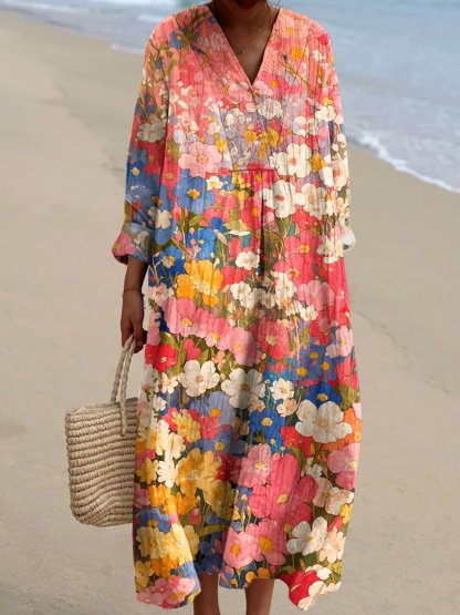 Women's Vintage Floral Art Print Flowy Dress
