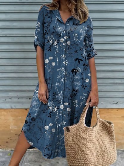 Women's Vintage Flower Art Print Casual Maxi Dress