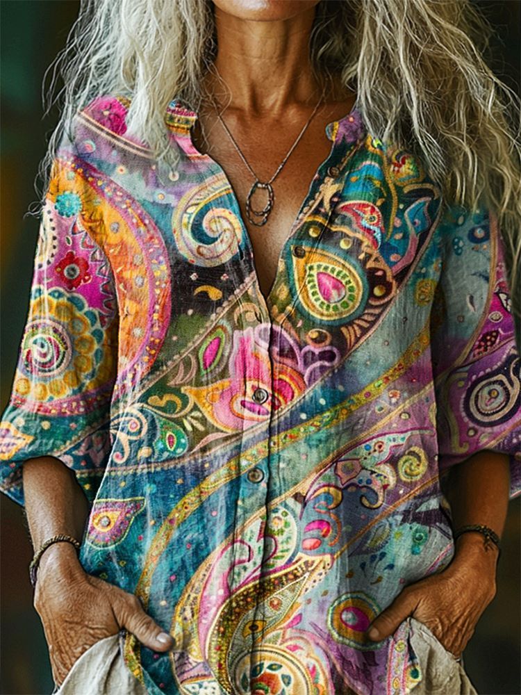 Women's Floral Tattoo Pattern Art Print Casual Cotton Linen Shirt