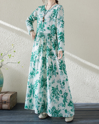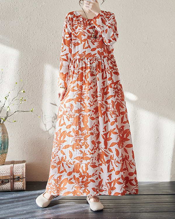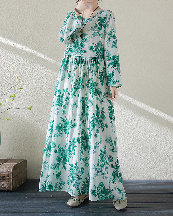 Holiday Round Neck Vintage Cotton and Linen Dress