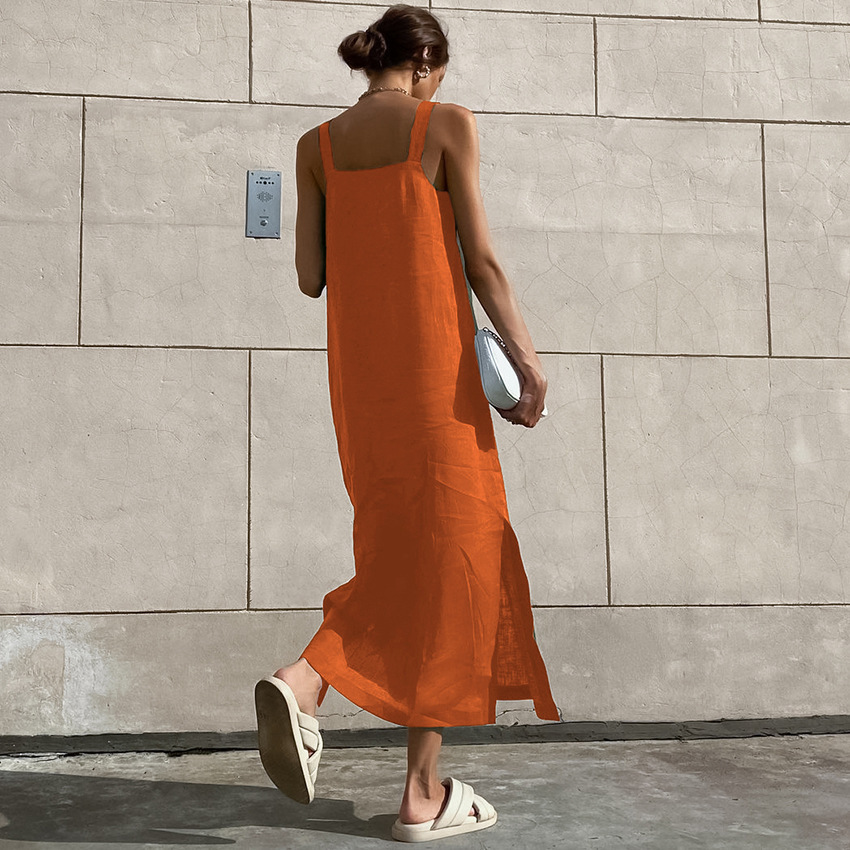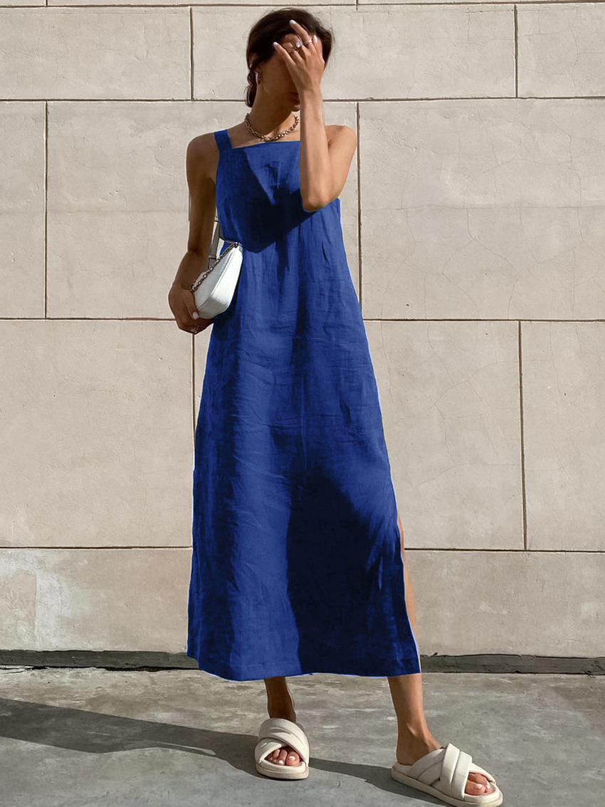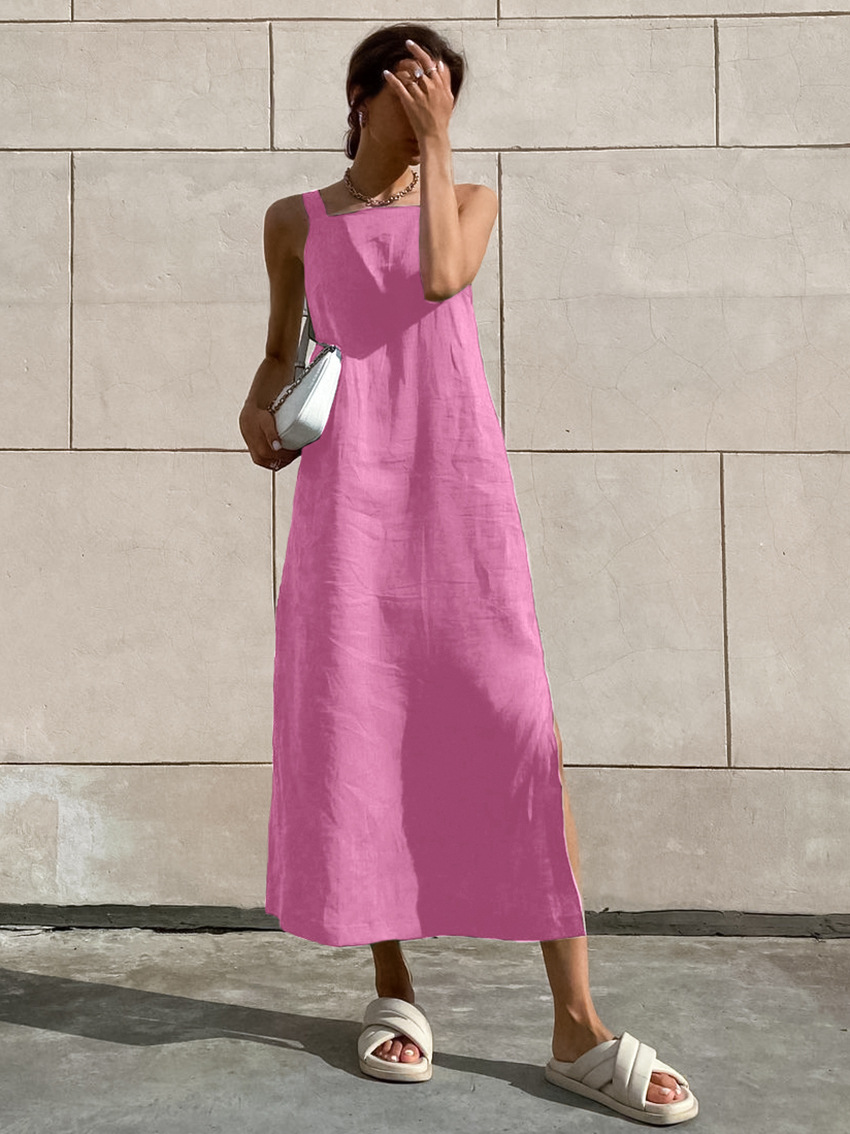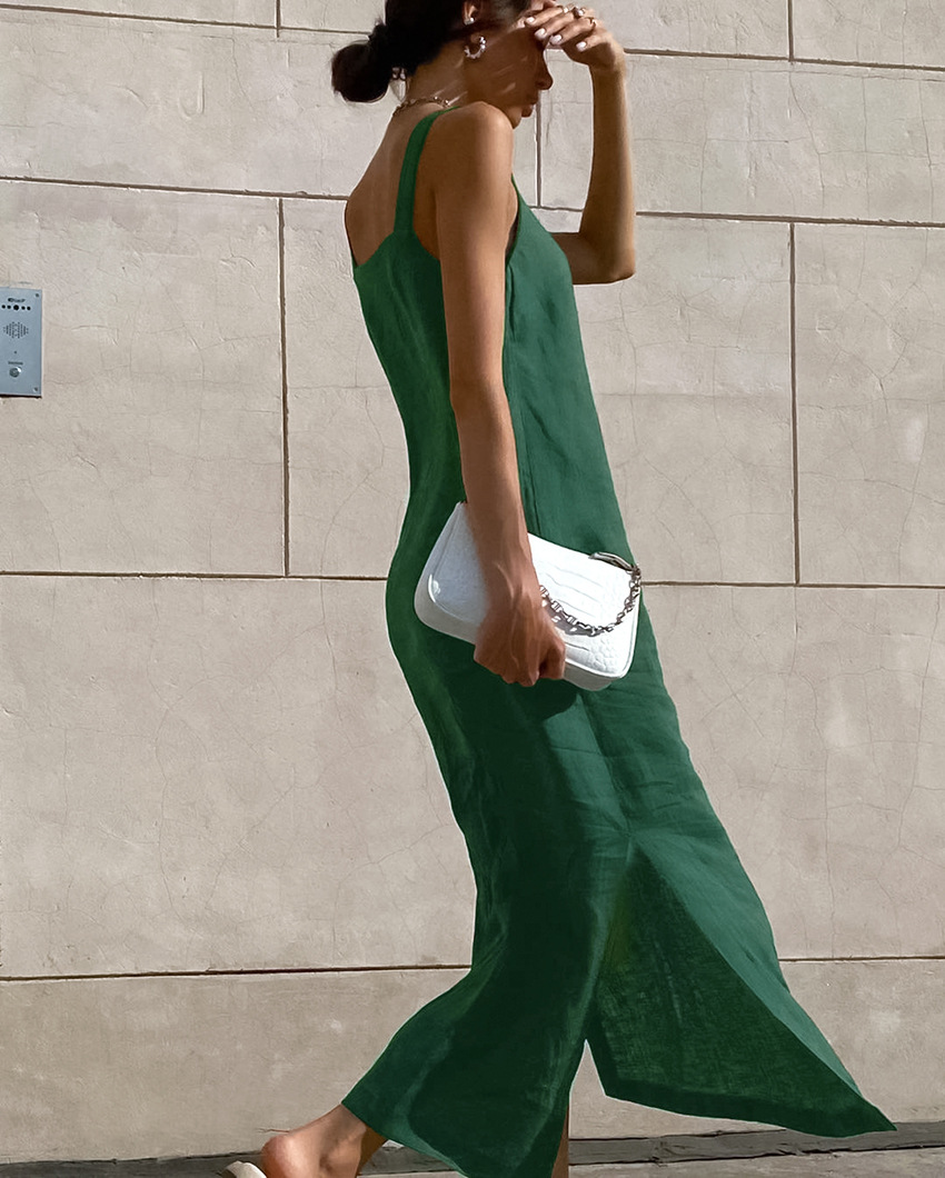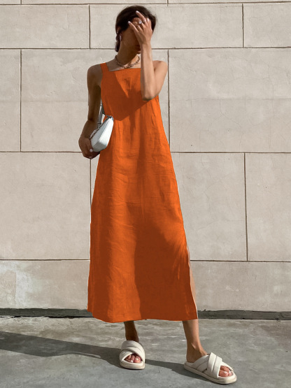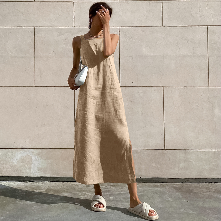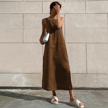 2024 New Summer Cotton Linen Loose Split Halter Dresses