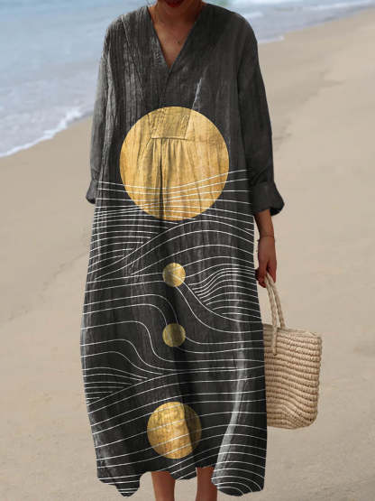 Women's Abstract Geometric Line Pattern Art Print Cotton Dress