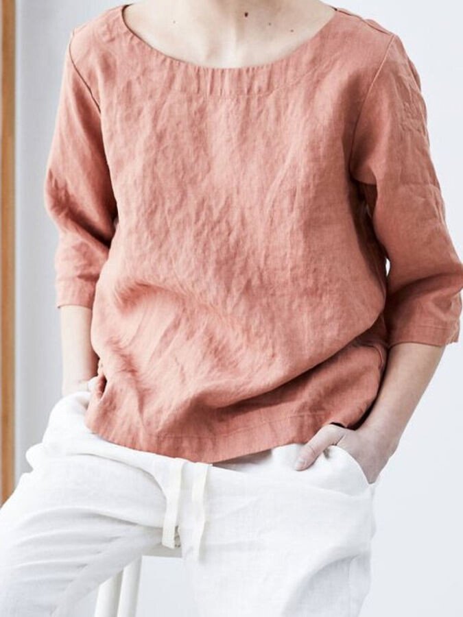 Women's Cotton Linen Comfortable Casual Simple Loose Pullover Shirt
