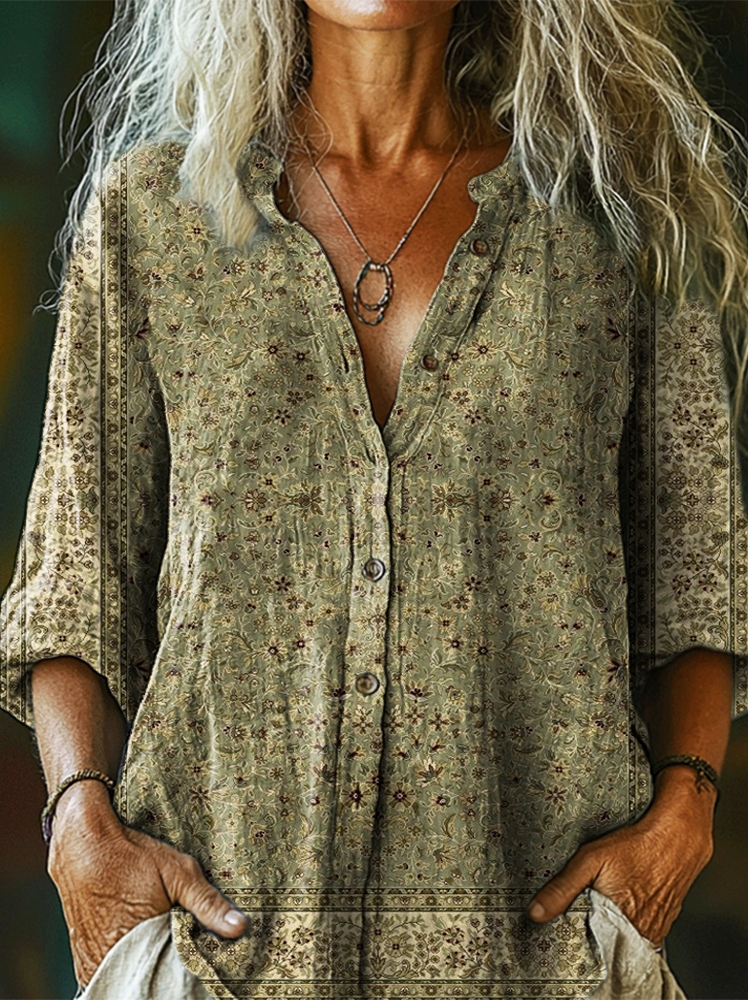 Women's National Totem Art Print Casual Cotton Linen Shirt