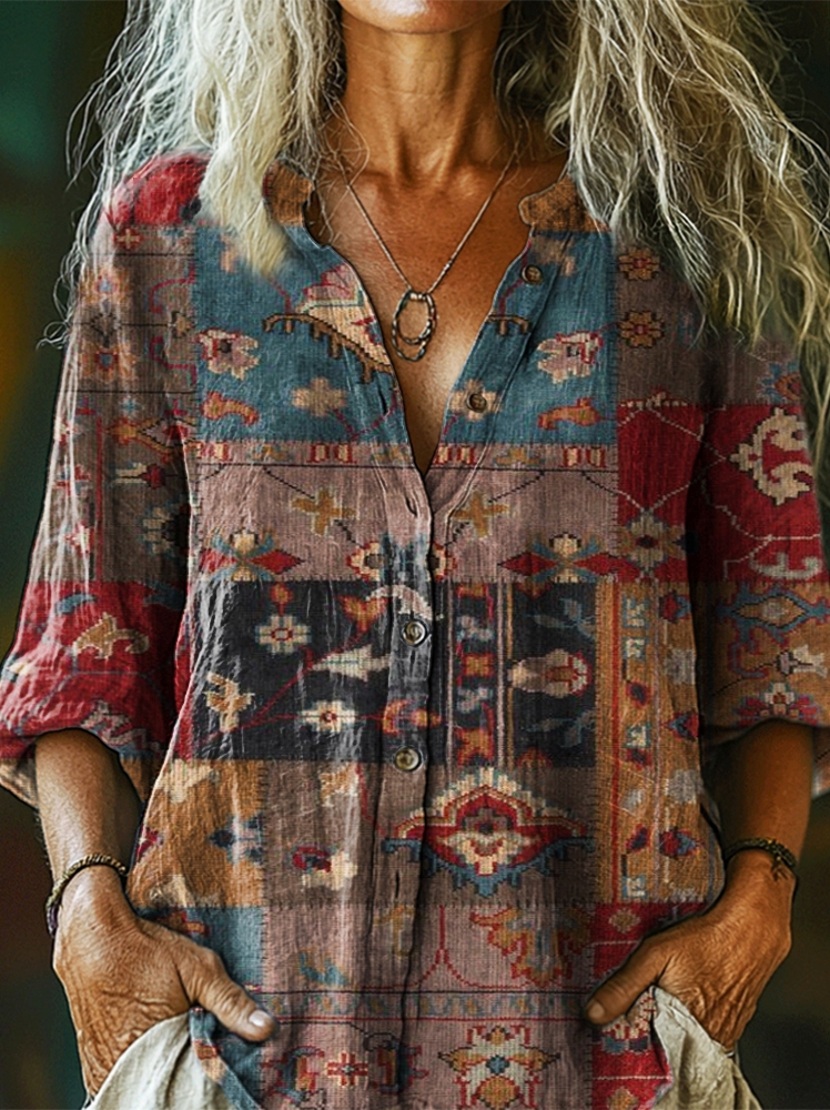 Women's National Totem Art Print Casual Cotton Linen Shirt
