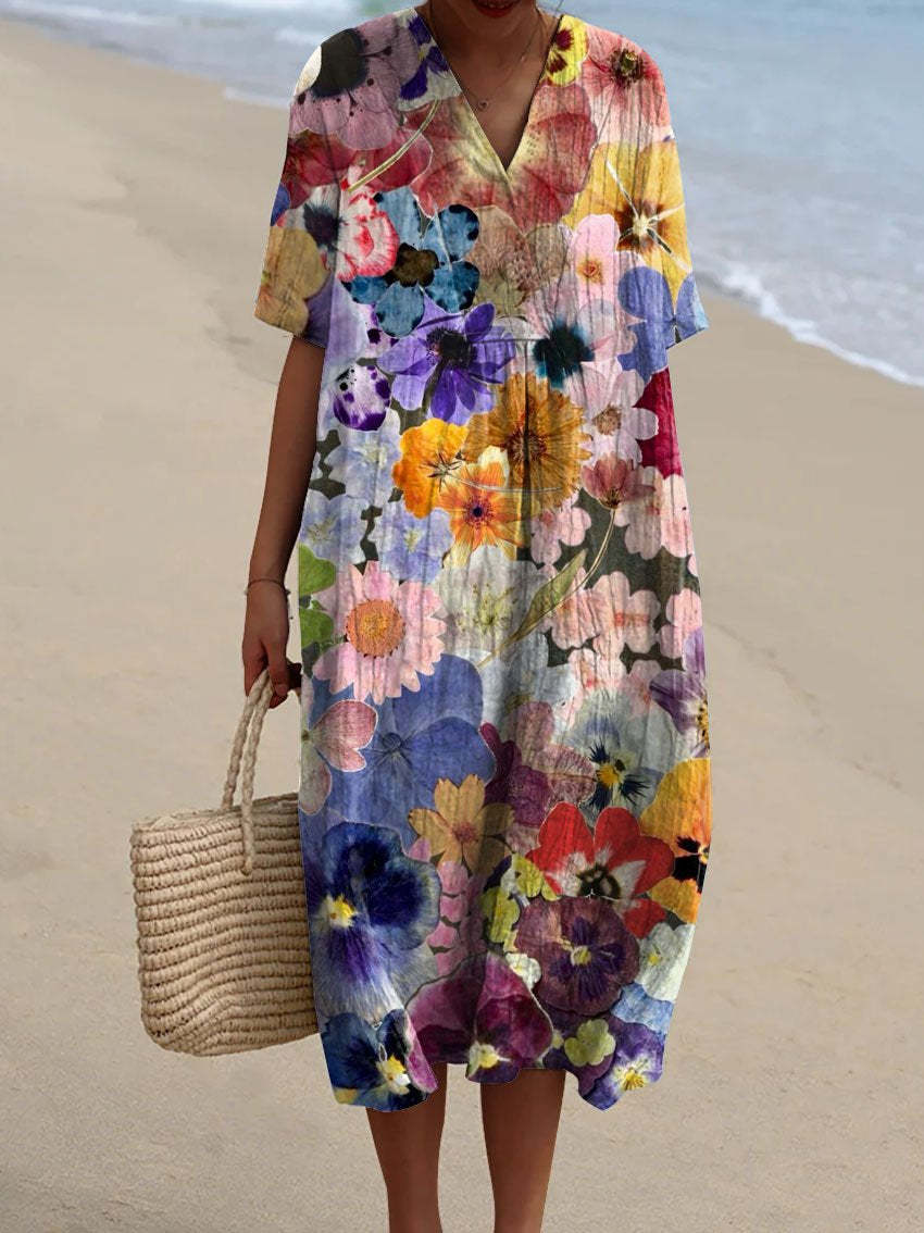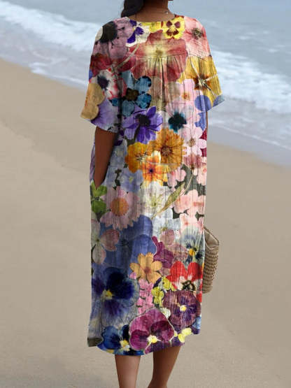 Women's Vintage Floral Art Print Casual Flowy Dress