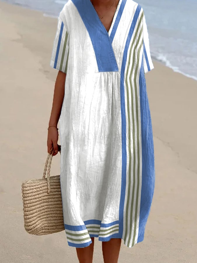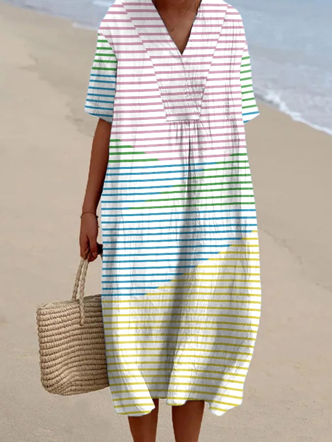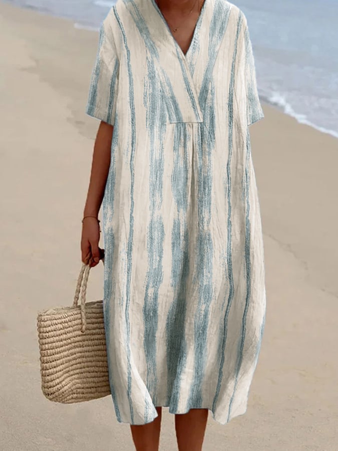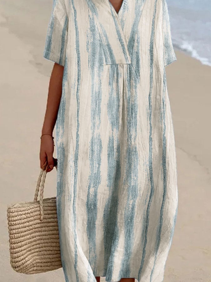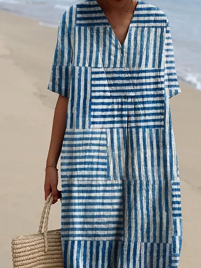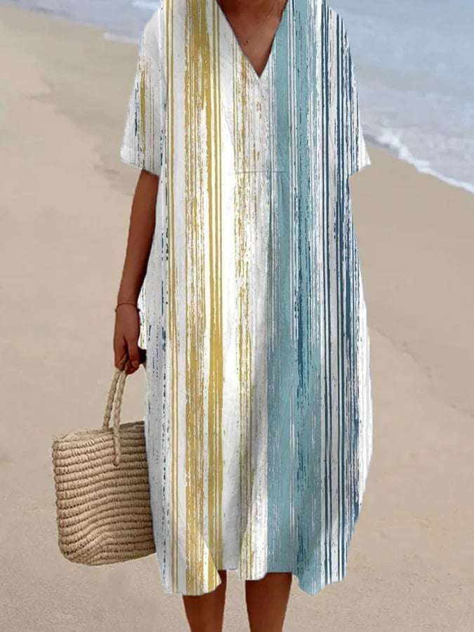 Women's Casual Fresh Stripe Pattern Print Loose Dress