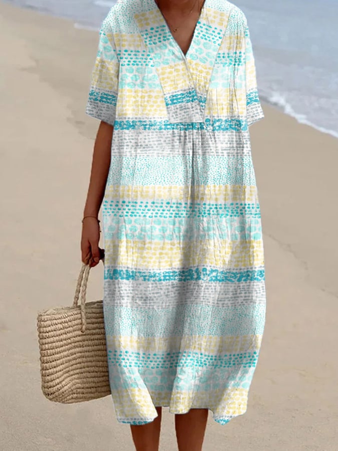 Women's Casual Striped Polka Dot Loose Short Sleeve Dress