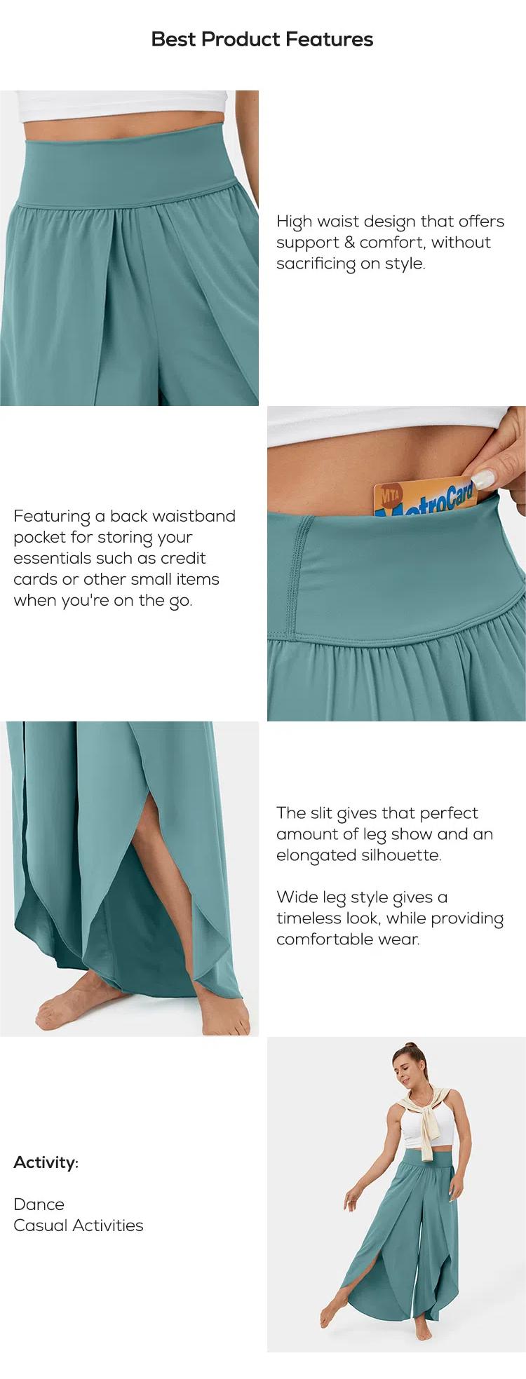Split Wide Leg Quick Dry Casual Pants is soft to the touch, with 4-way stretch, breathability, and sweat-wicking qualities to keep you dry and comfortable for movement. Ideal for medium-impact activities such as running, gym workouts, and dance. Lightweight, breathable feel.