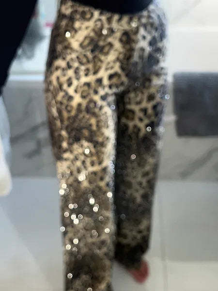 Elevate your denim game with the Leopard Diamanté Flared Jeans, where bold animal prints meet sparkling accents for a statement-making style. These jeans are the perfect fusion of retro-inspired flares and contemporary glam, designed to turn heads wherever you go.