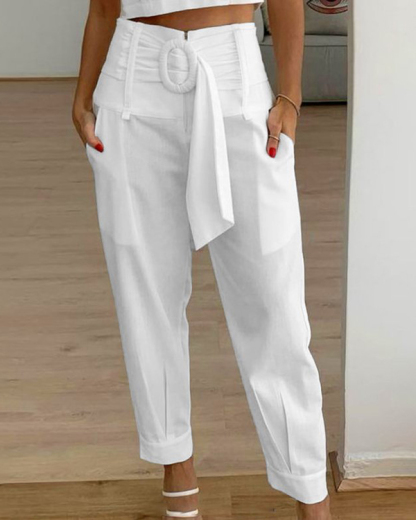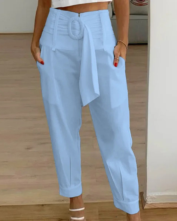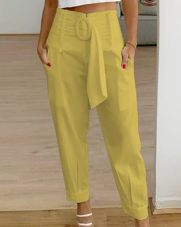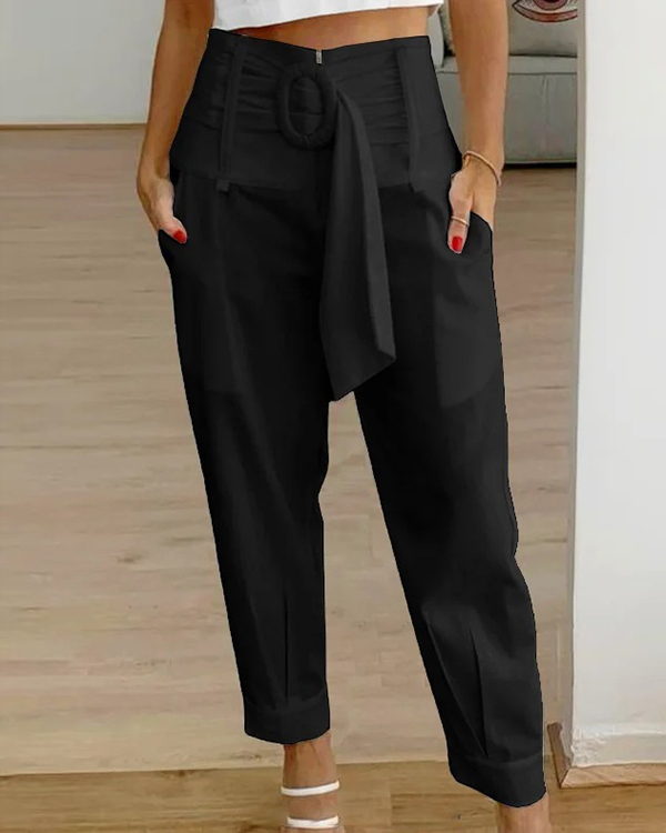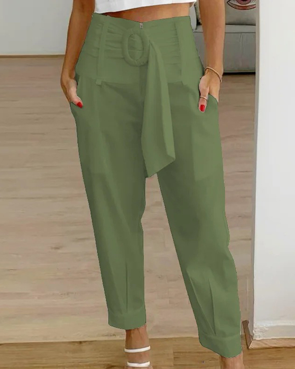 Women's Solid Color Casual Pants with Belt