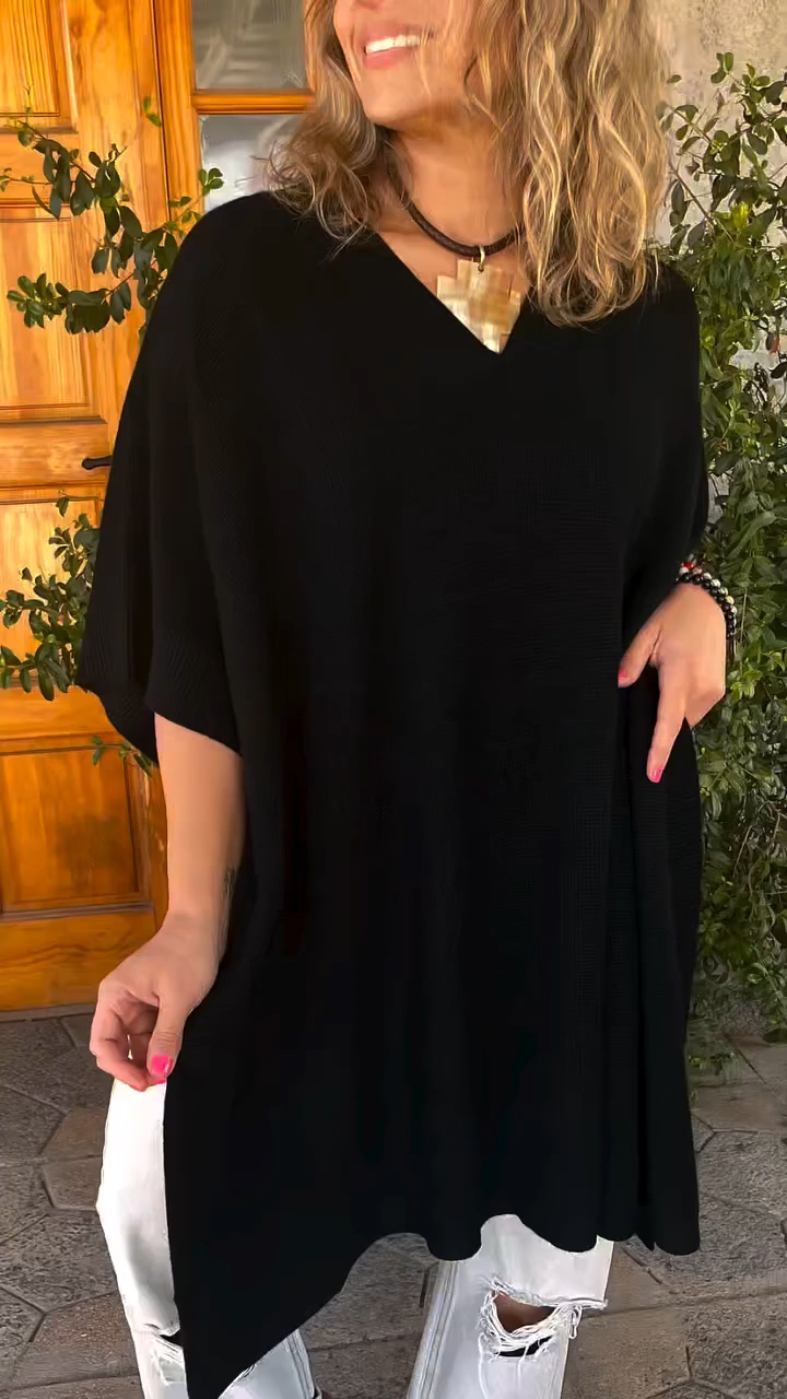 Crafted from a soft, breathable knit fabric, this poncho top offers a fit that’s both cozy and figure - friendly. The loose design drapes beautifully over your body, allowing for easy movement and a relaxed feel. Whether you’re exploring a new city or meeting friends for a laid - back lunch, this top keeps you feeling at ease while looking effortlessly stylish. The fabric’s stretchy nature ensures it adapts to your shape, and the side slits add a touch of flow and convenience.