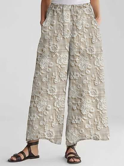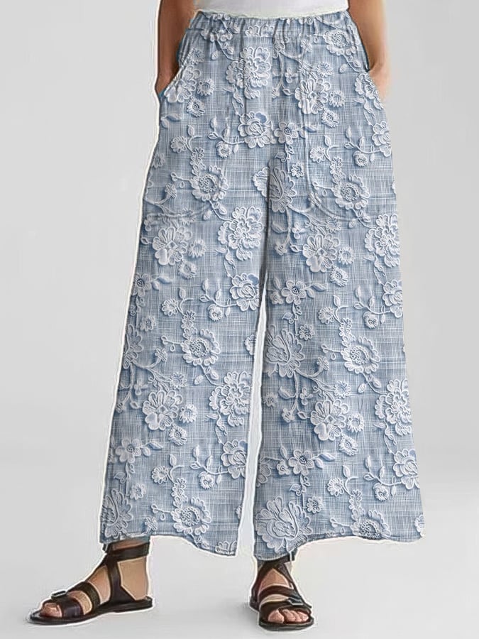 Women's Casual Floral Embroidery Print Pants (With Pockets)