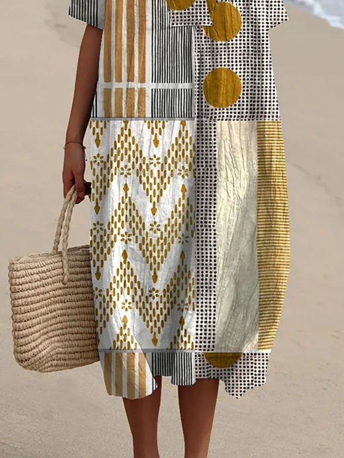 Women's Casual Striped Graphic Print Loose Dress