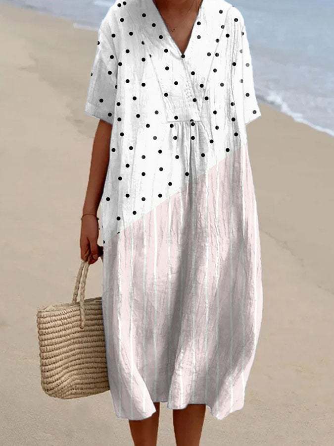Women's Casual Striped Polka Dot Loose Short Sleeve Dress