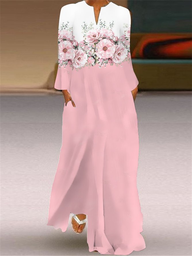 Casual Floral V-neck Long-sleeved Dress