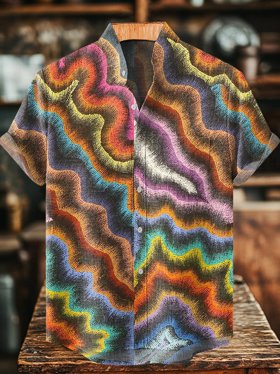 Men's Art Painting Colorful Fun Print Stand Collar Shirt