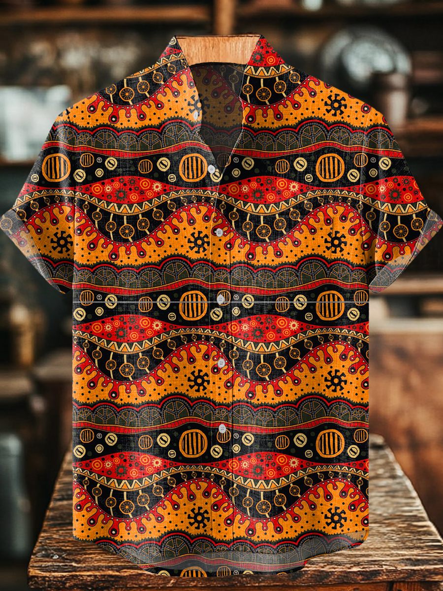 Men's Art Painting Ethnic Style Retro Print Stand Collar Shirt