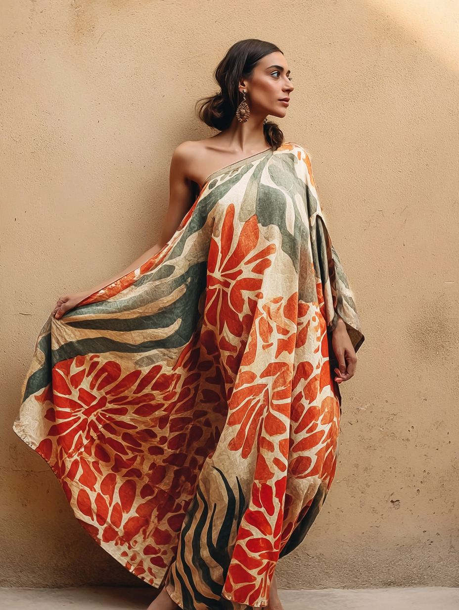 One-shoulder Flower Fairy Flowing Cotton And Linen Kaftan