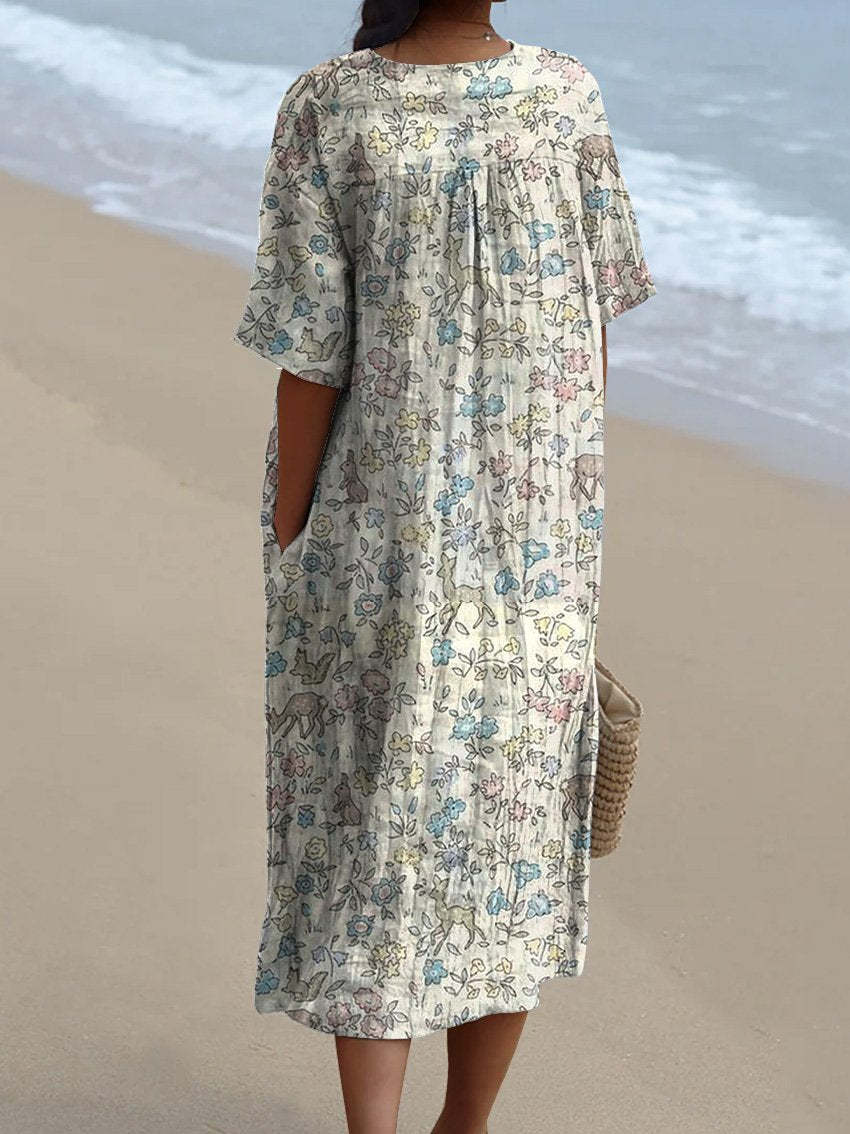Retro Style Sweet Woodland Pattern Printed Women's Flowy Dress