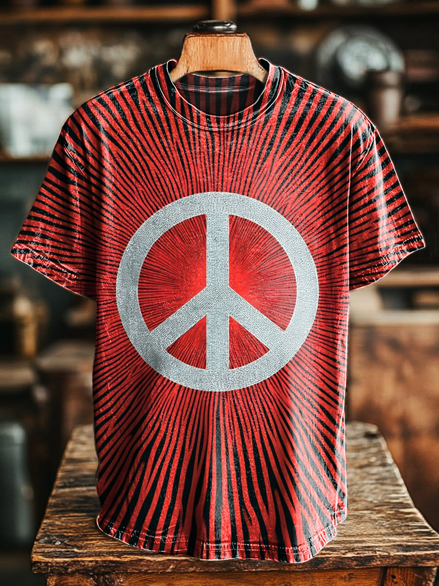 Unisex Art Painting Hippie Visual Impact Printed Round Neck T-Shirt