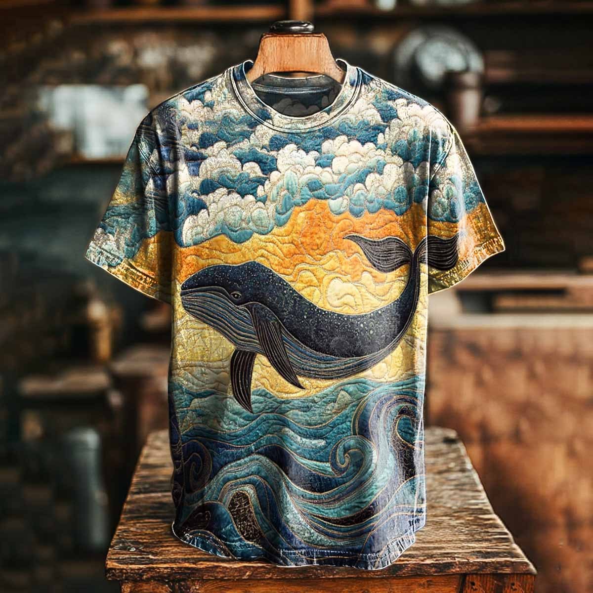 Unisex Stormy Lonely Whale Art Print Casual Loose Short Sleeve T-Shirt