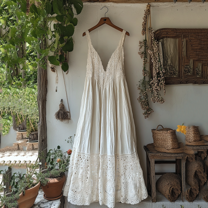 Vintage Lace Art Linen Maxi Suspender Dress
