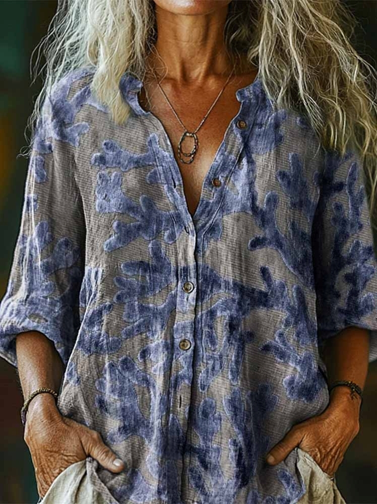 Women's Bohemian Floral Art Print Casual Cotton Linen Shirt