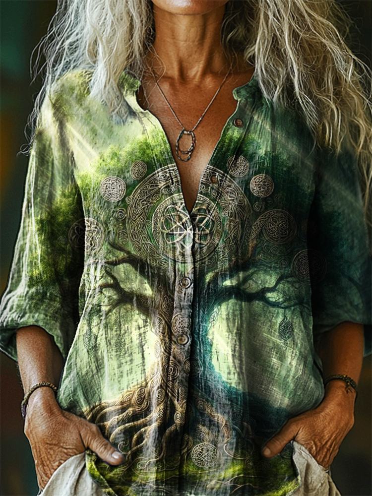 Women's Celtic Art Print Casual Cotton Linen Shirt