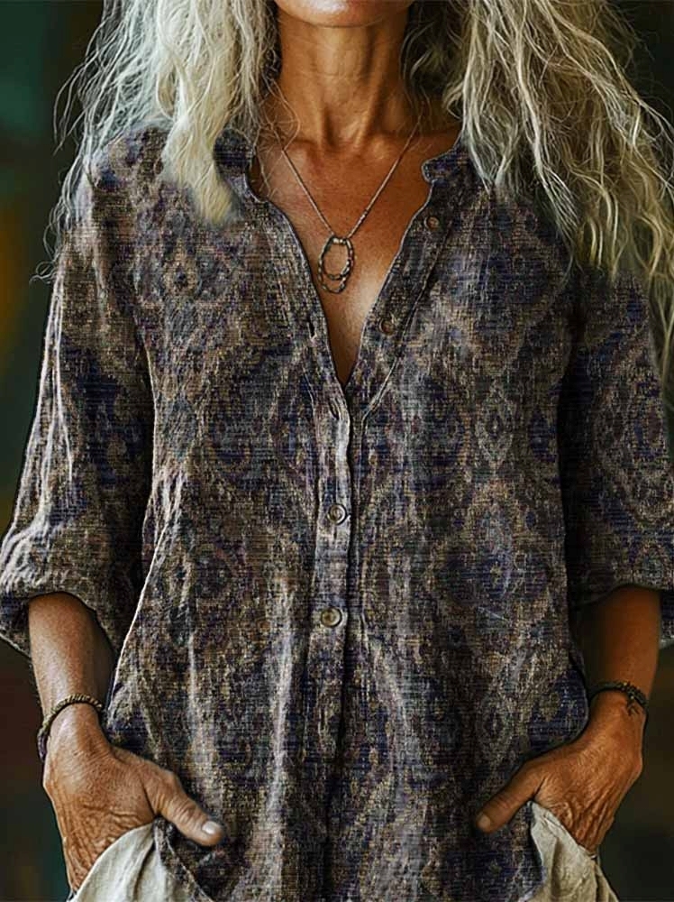 Women's Retro Ethnic Totem Art Print Casual Cotton Linen Shirt