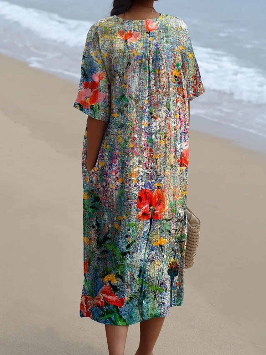 Women's Retro Floral Art Print Casual Flowy Dress