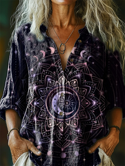 Women's Starmoon Art Print Casual Cotton Linen Shirt