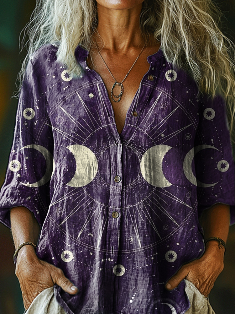 Women's Starmoon Art Print Casual Cotton Linen Shirt