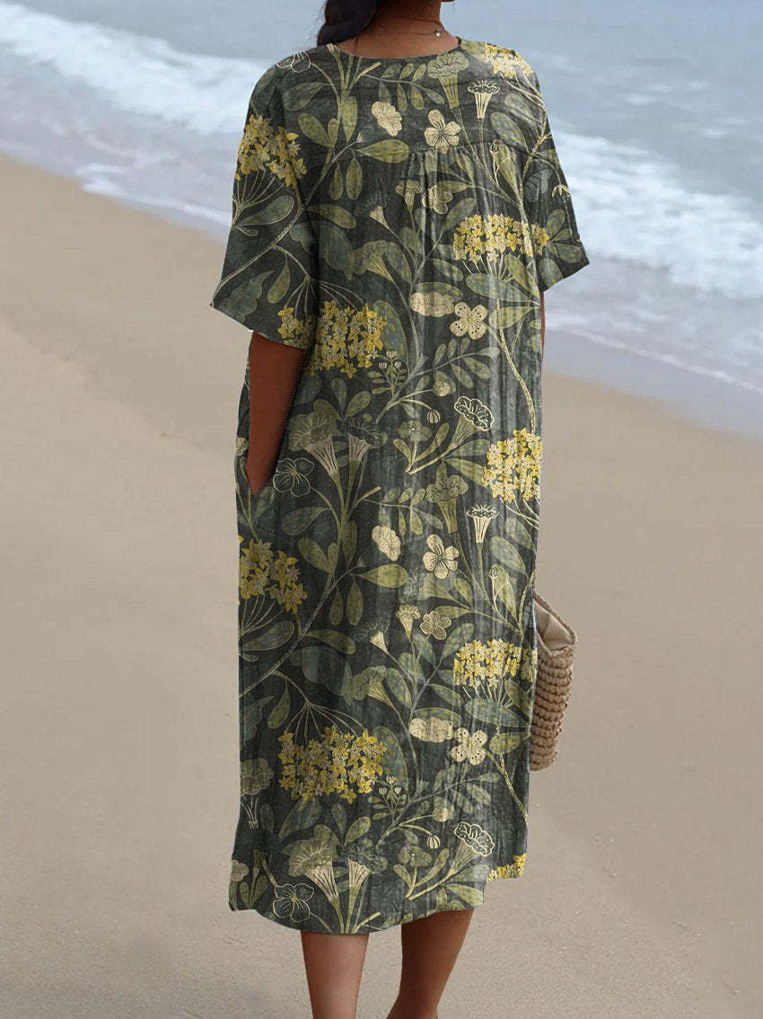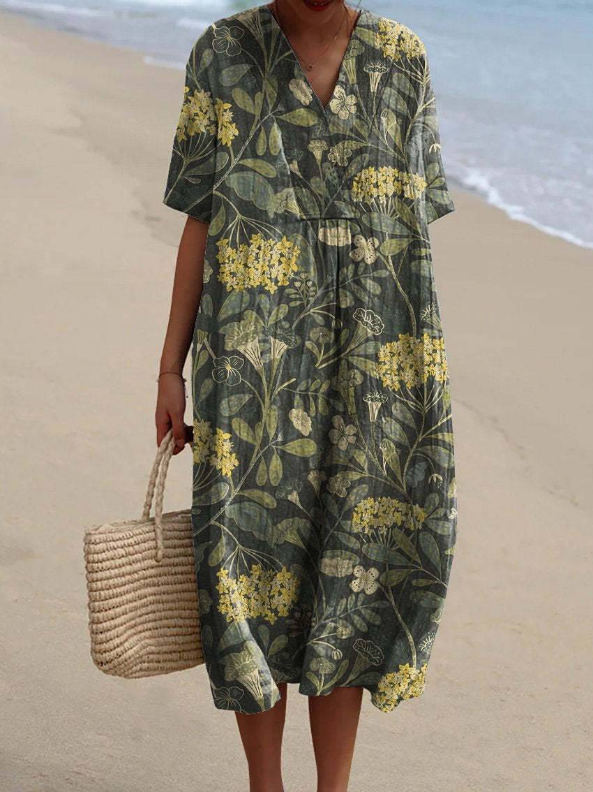 Yellow Alyssum Floral Repeat Pattern Printed Women's Flowy Dress