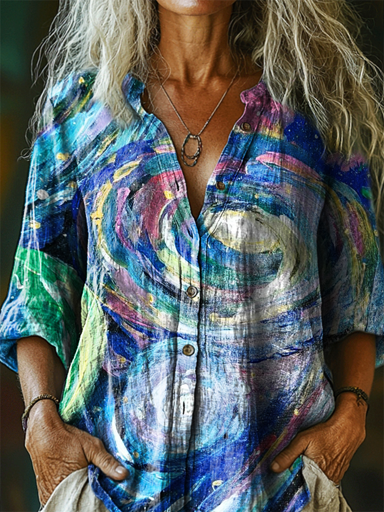 Women's Retro Abstraction Art Print Casual Cotton Linen Shirt