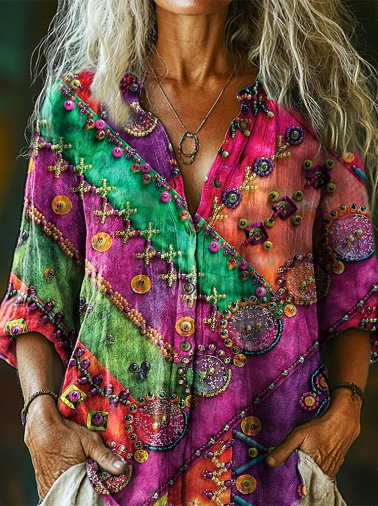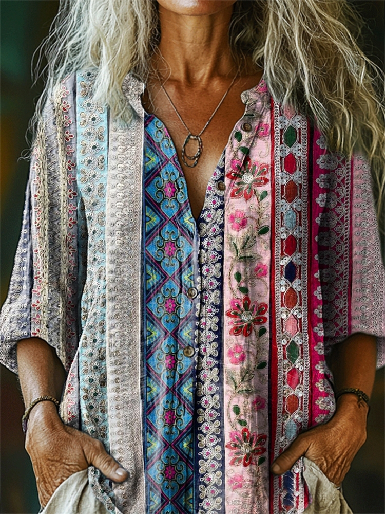 Women's Bohemian Patterns Art Print Casual Cotton Linen Shirt
