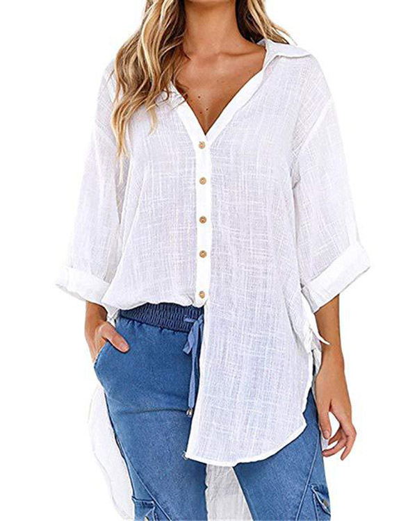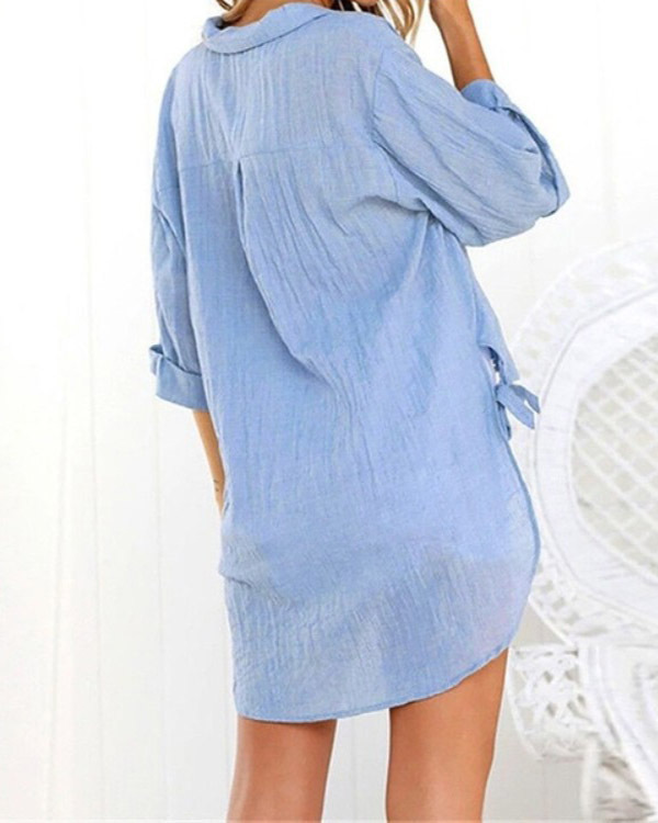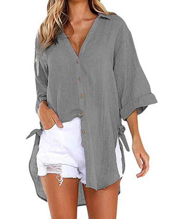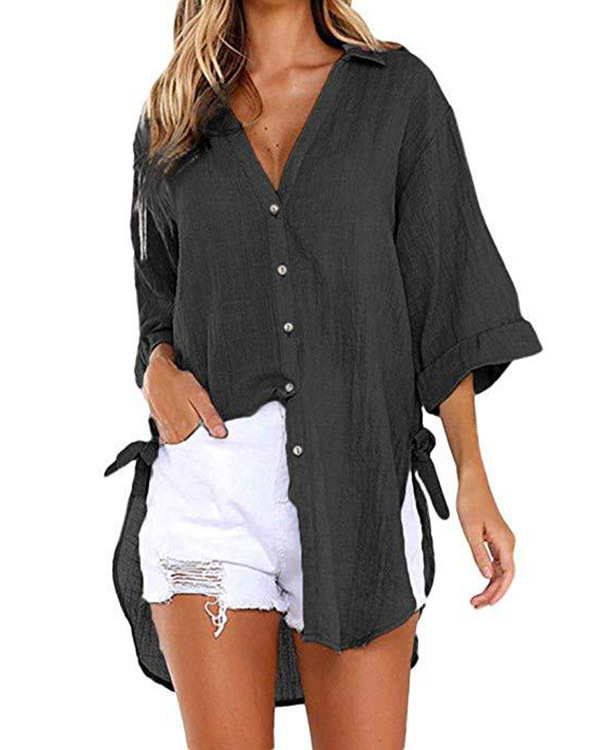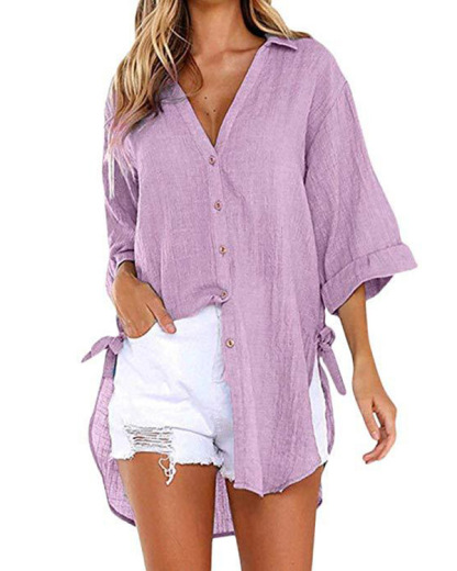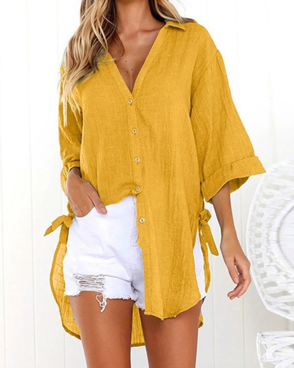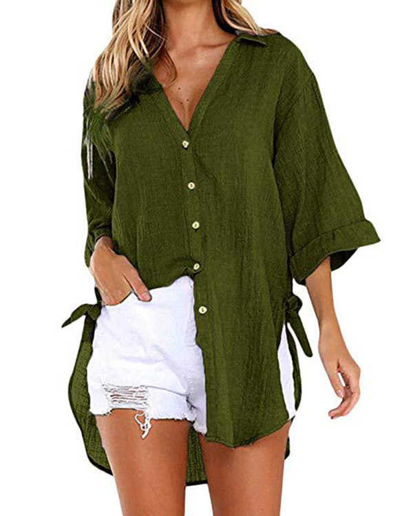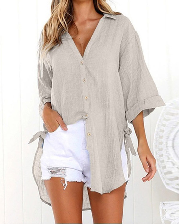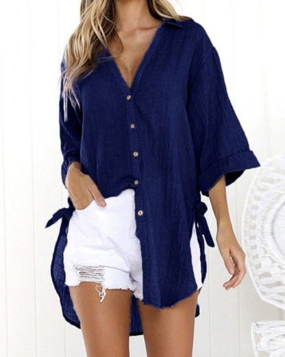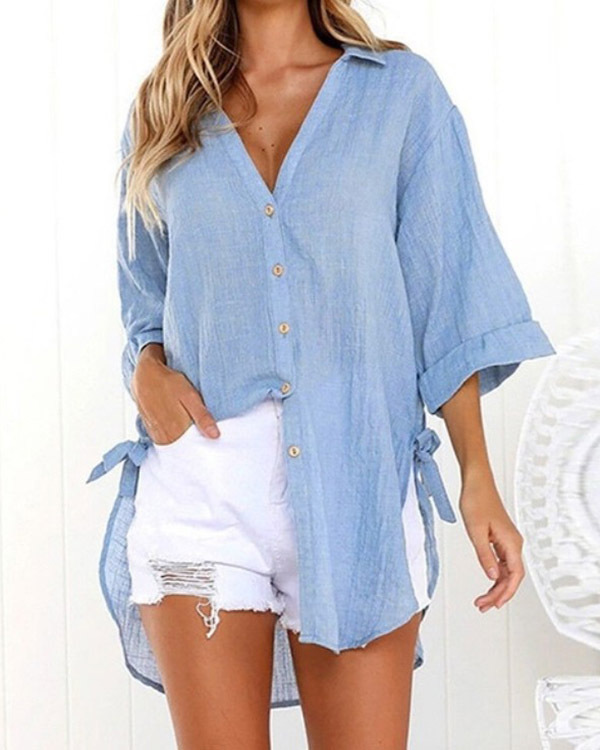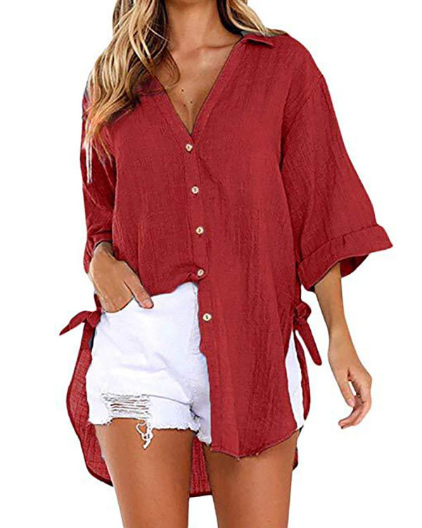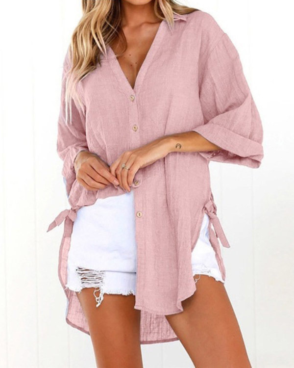 Casual Lace-up V-neck Loose Shirt Top