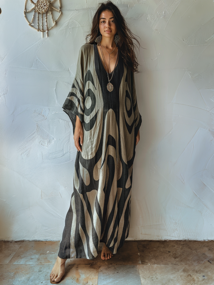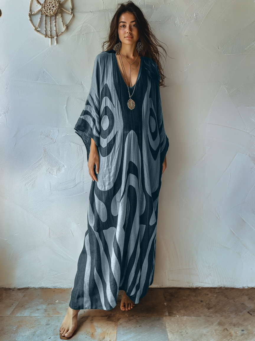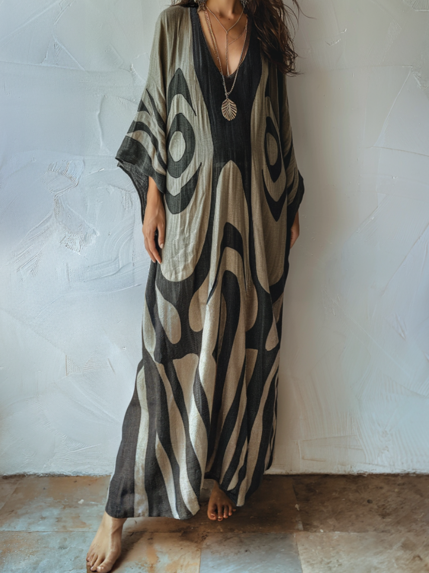 Linen Printed Kaftan Maxi Dress
