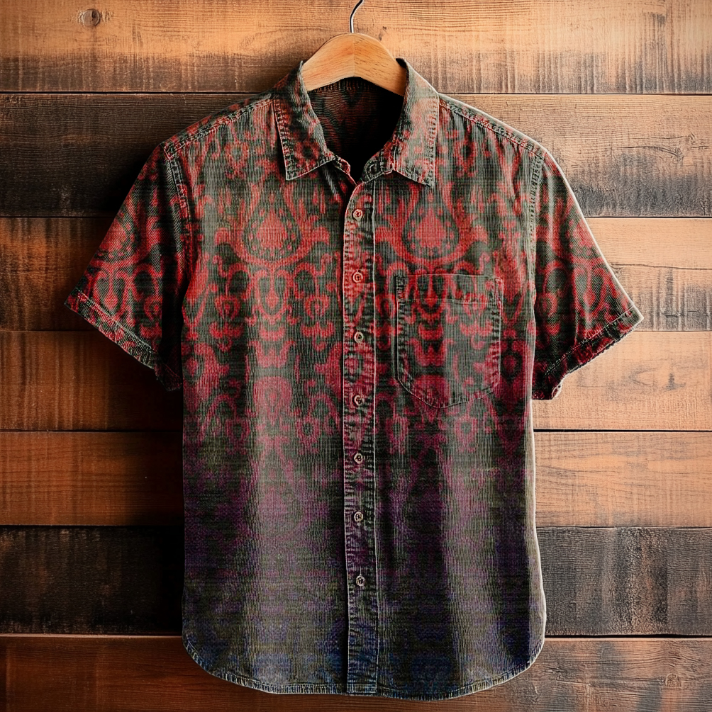 Men's Art Painting Ethnic Style Retro Print Short Sleeve Lapel Shirt